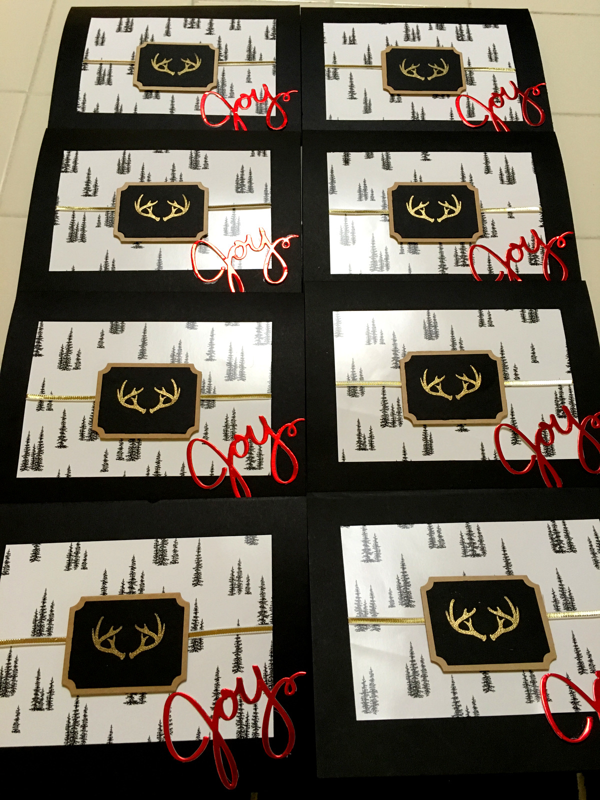 Kelsey liked those antlers from the moment she saw them. I like how she made it the focal point of her card using gold embossing powder.