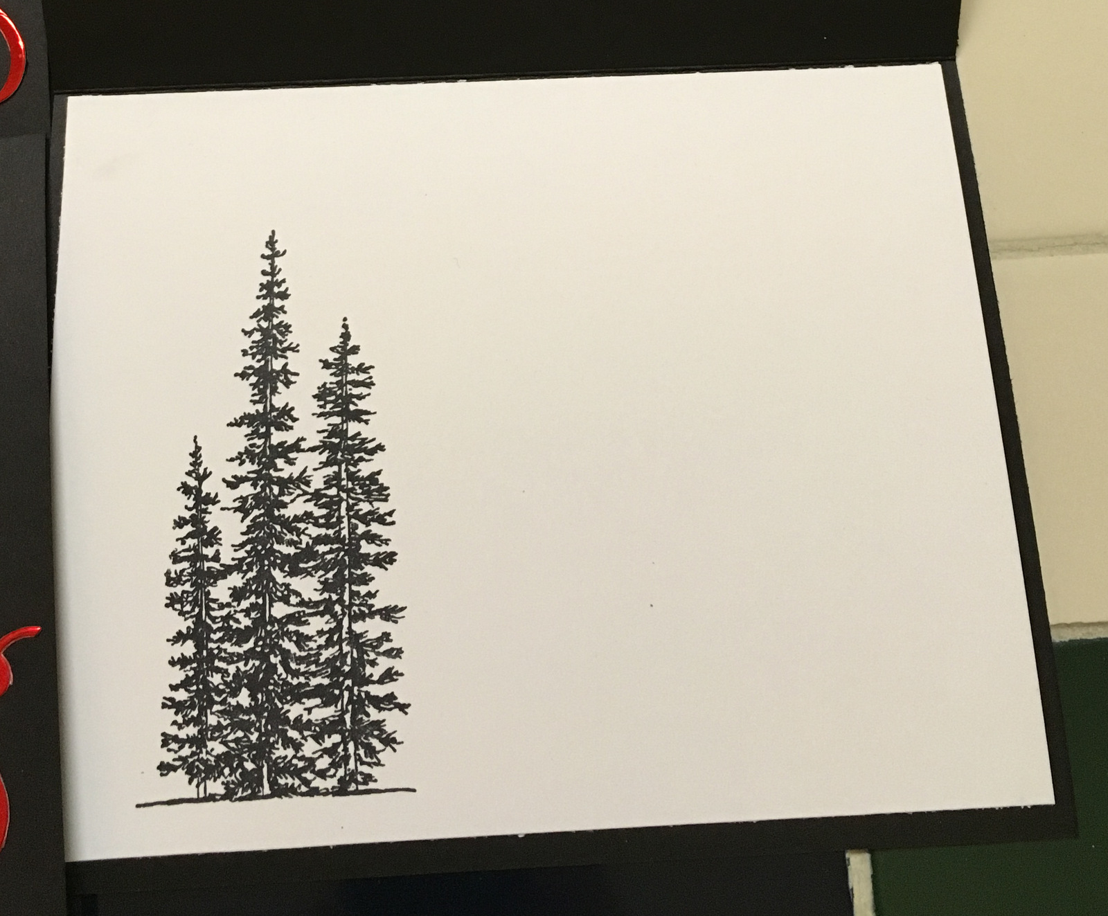 Don’t forget the inside. Here she did use the tree stamp, leaving plenty of room for her messages.