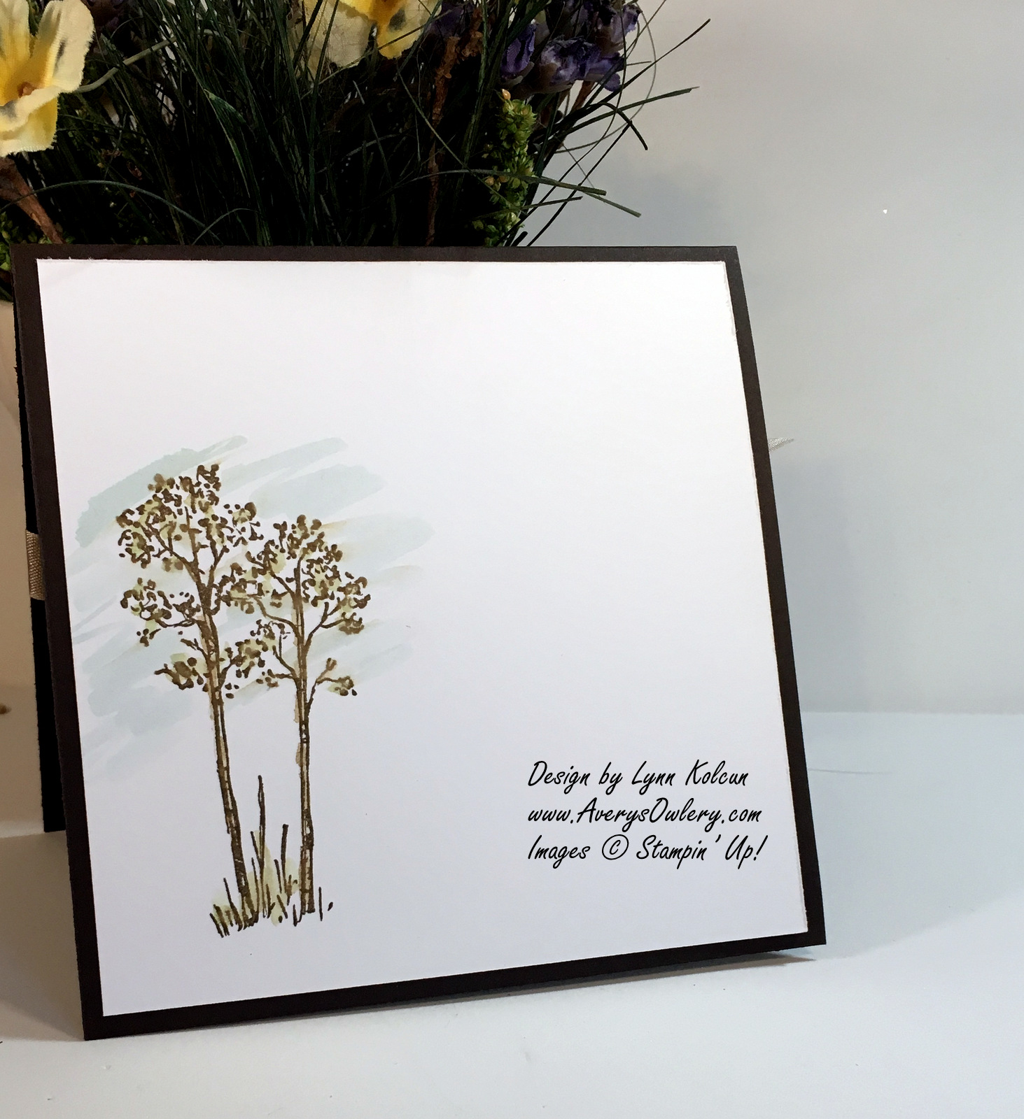 Don’t forget the inside. The tree image, also from In the Meadow was stamped with Soft Suede with Pear Pizzaz, Soft Suede and Soft Sky highlights.