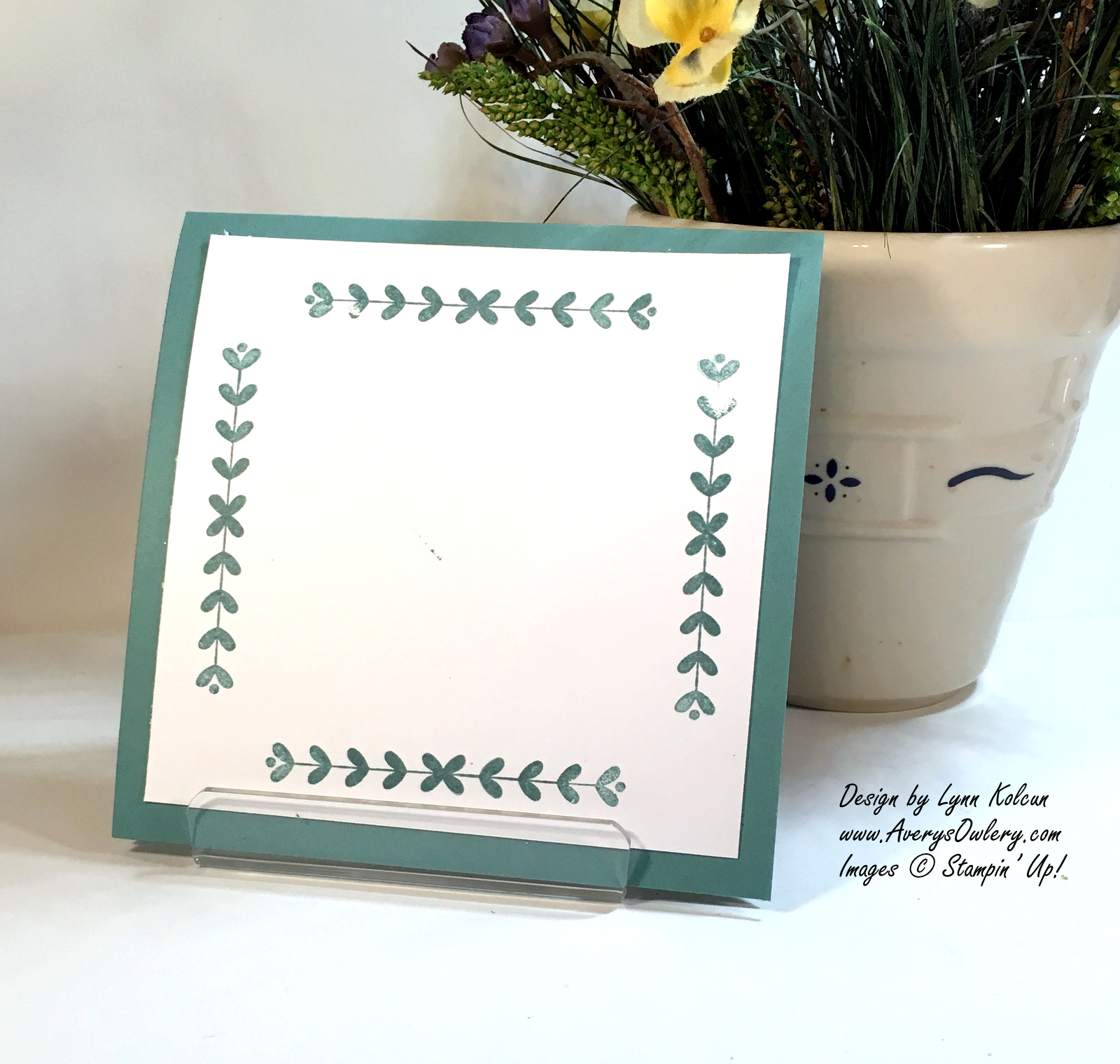 Once I looked at it all together it was still missing something so I added a piece of Lost Lagoon ribbon (retired). It was still missing something so I went looking for some border stamps and landed on this cute one from Enjoy the Little Things. Now it looked complete to me.