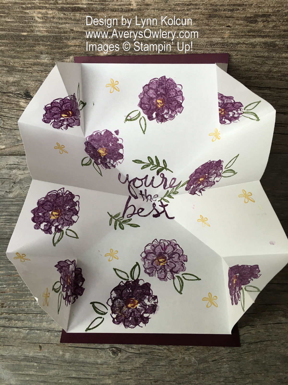 - When folded, the inside does fit into a 4-1/4 x4-1/4 square card but I didn’t like that there wasn’t a border around the inside so I made my card 4-1/2 x 4 1/2.