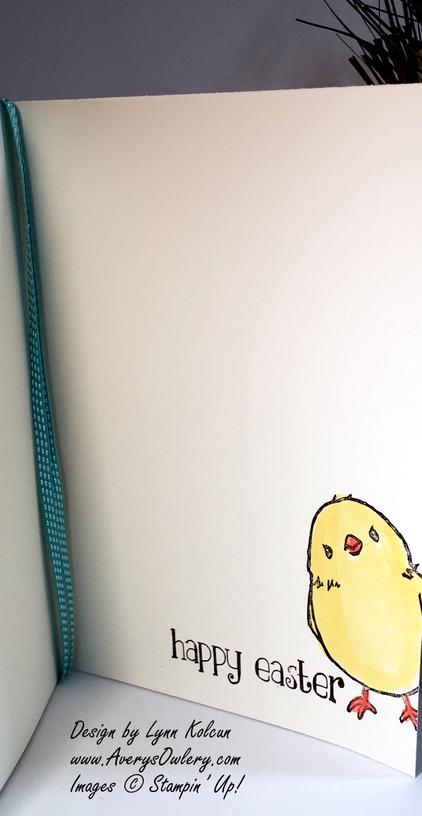 Don’t forget the inside. I restamped the chick and colored with Daffodil Delight. The Happy Easter is from the Easter Lamb stamp.
