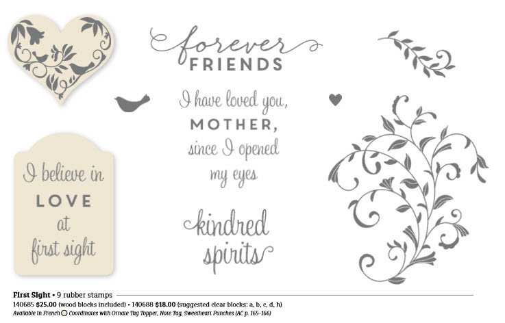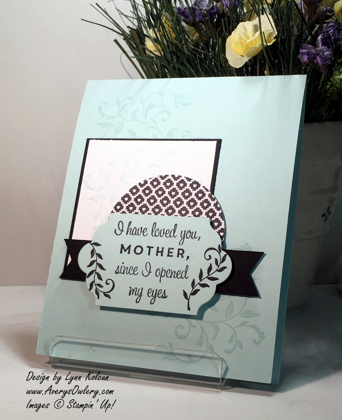 I am not beyond using many many stamp sets on a single card but I get a real sense of accomplishment and pride when I can create a lovely project, using only one single stamp set. That is, well nearly, the case with today’s Mother’s Day Card and the First Site stamp set. The flourishes, the sentiments, the colors all came together. I say nearly because I did have to use a non-Stampin Up stamp on the inside. More on that below.