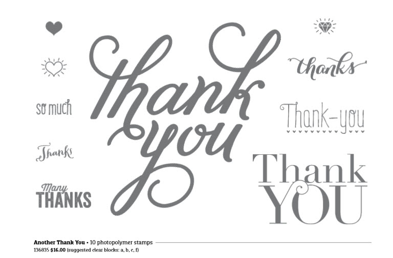 I loved the top left sample from the annual catalog on page 119 but I really did need a Thank You card instead of a Friend card so I changed it up a tiny bit. I made several of these cards to give out to my customers who placed an order with me this month.