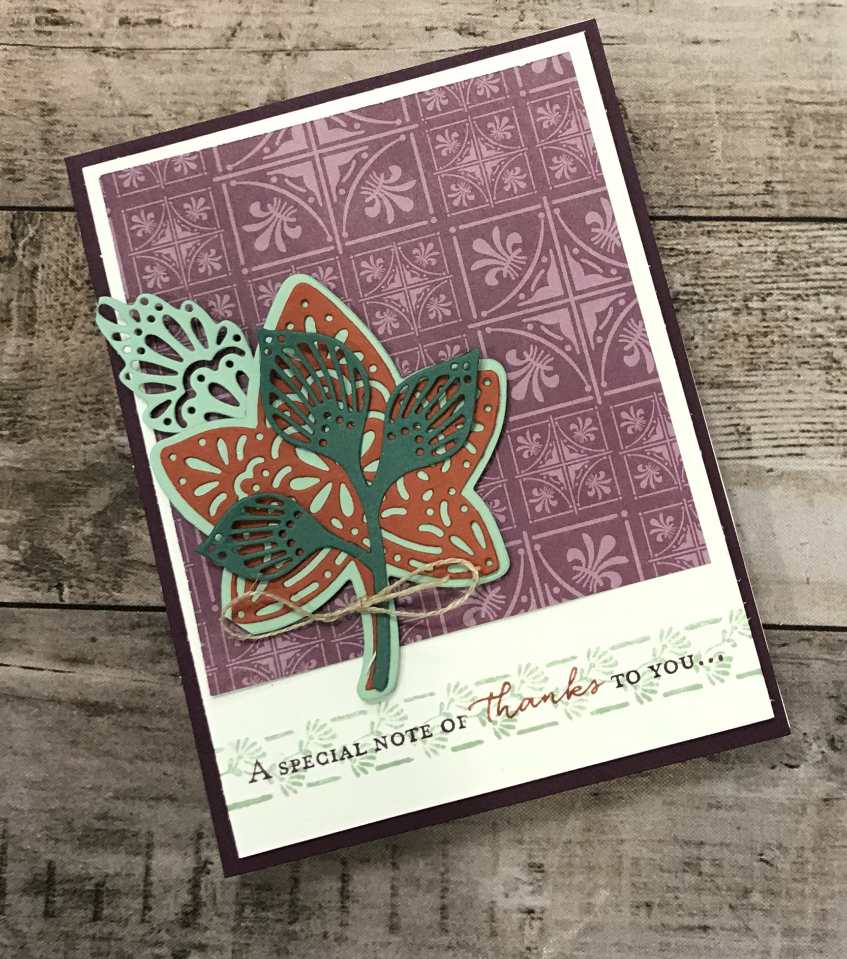 Great job combining the 2 challenges! I like how you layered Mint Macaron behind the detailed leaf die cut. It really makes it pop! And combining the Floral Phrases is perfect…it complements the leaves beautifully! Thanks for sharing at Fab Friday!