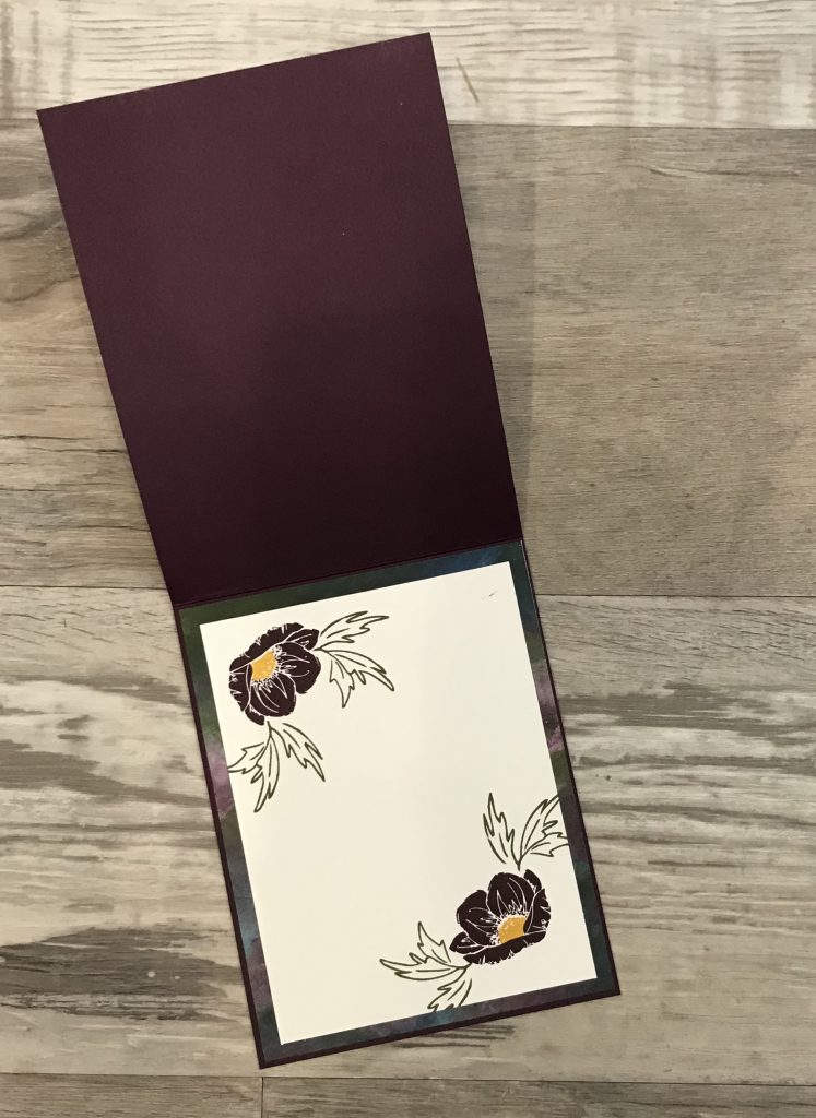 Finally there is a full card behind the front for messaging along with the double points on the front. I carried over the same Designer Series Paper from the front as a layer in the back.