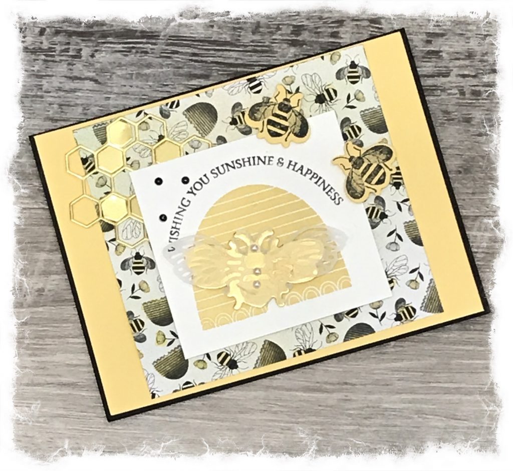One of my favorite things about Stampin’UP! is their coordination of products. And I especially love this time of year when I, and you, can earn free products. But when the free product also coordinates with other products, I’m over the moon happy. That’s the case with the Golden Honey Specialty Designer Series Paper available for free with a $50 order of product (before Shipping and Tax). It was designed to coordinate with the Honey Bee Bundle. There are even images that some of the dies crop out perfectly. Check out this video from Stampin Up.