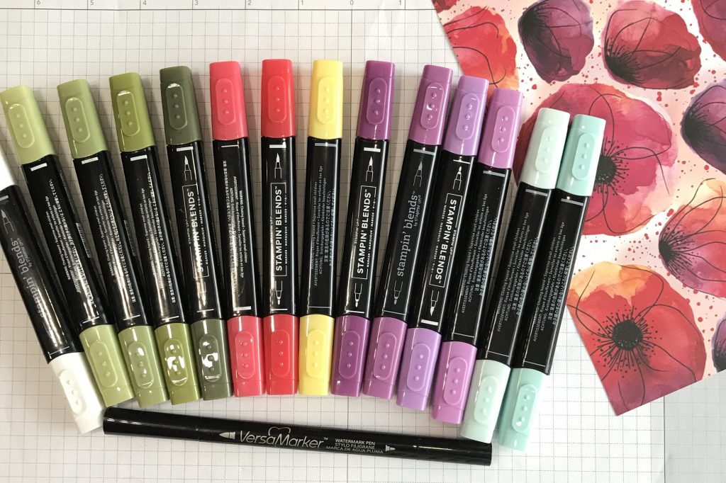 I used Stampin Blends to color the image. I loosely used this piece of DSP as a guide to color my poppies. The color lifter worked great to take some color off of the embossed lines and flower centers.